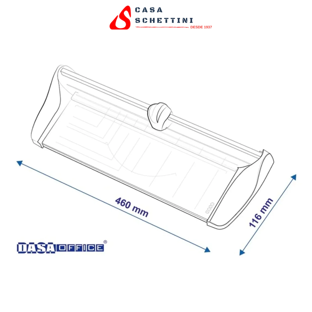 Guillotina rotativa tamaño A3 Largo de corte 460 mm Incluye cabezal de corte recto. Fácil cambio de cuchilla y listones de corte. Máxima seguridad y precisión. Cuchillas de acero templado y rectificado. Base metálica serigrafiada con formatos de corte DIN.