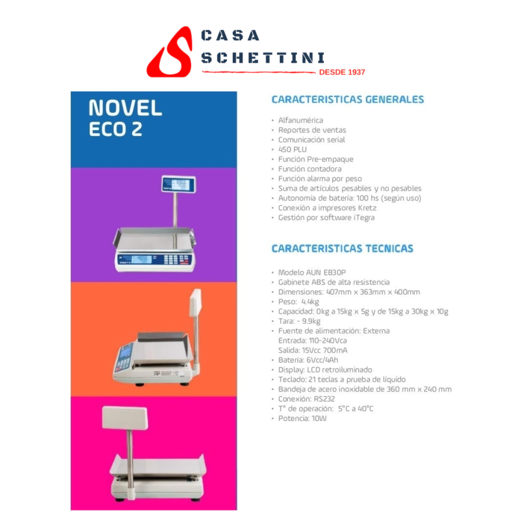 CARACTERÍSTICAS DE BALANZA NOVEL ECO 2 - CON MÁSTIL - 30kg