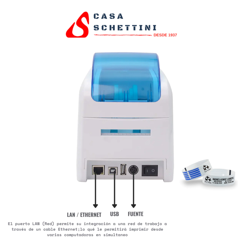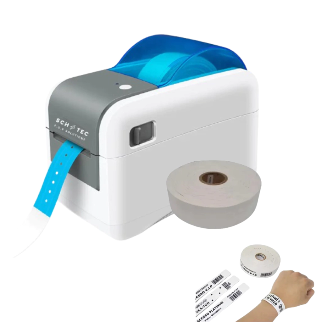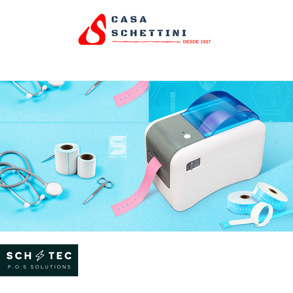 La SCH TEC SCH-PT1 es una impresora térmica compacta y confiable, diseñada para cubrir con eficiencia las necesidades de impresión de pulseras personalizadas y etiquetas.