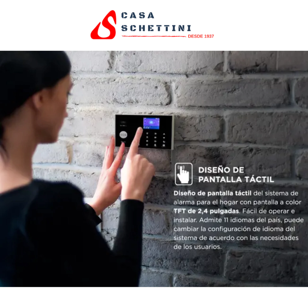 Diseño de pantalla táctil del sistema de alarma para el hogar con pantalla a color TFT de 2,4 pulgadas. Fácil de operar e instalar. Admite 11 idiomas del país, puede cambiar la configuración de idioma del sistema de acuerdo con las necesidades de los usuarios.