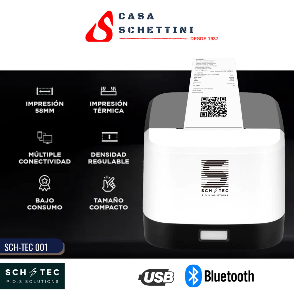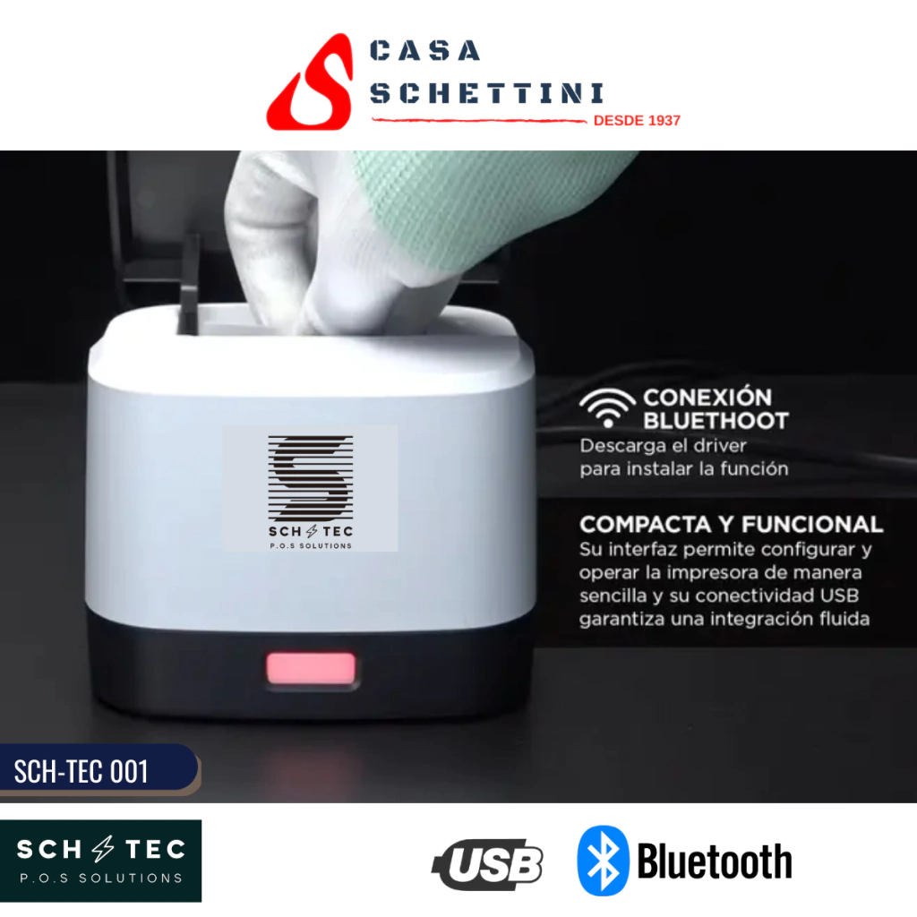 1) Impresora de Ticket Térmico SCH-TEC 001 – Eficiencia y versatilidad para tu negocio - Con conexión USB y BLUETOOTH