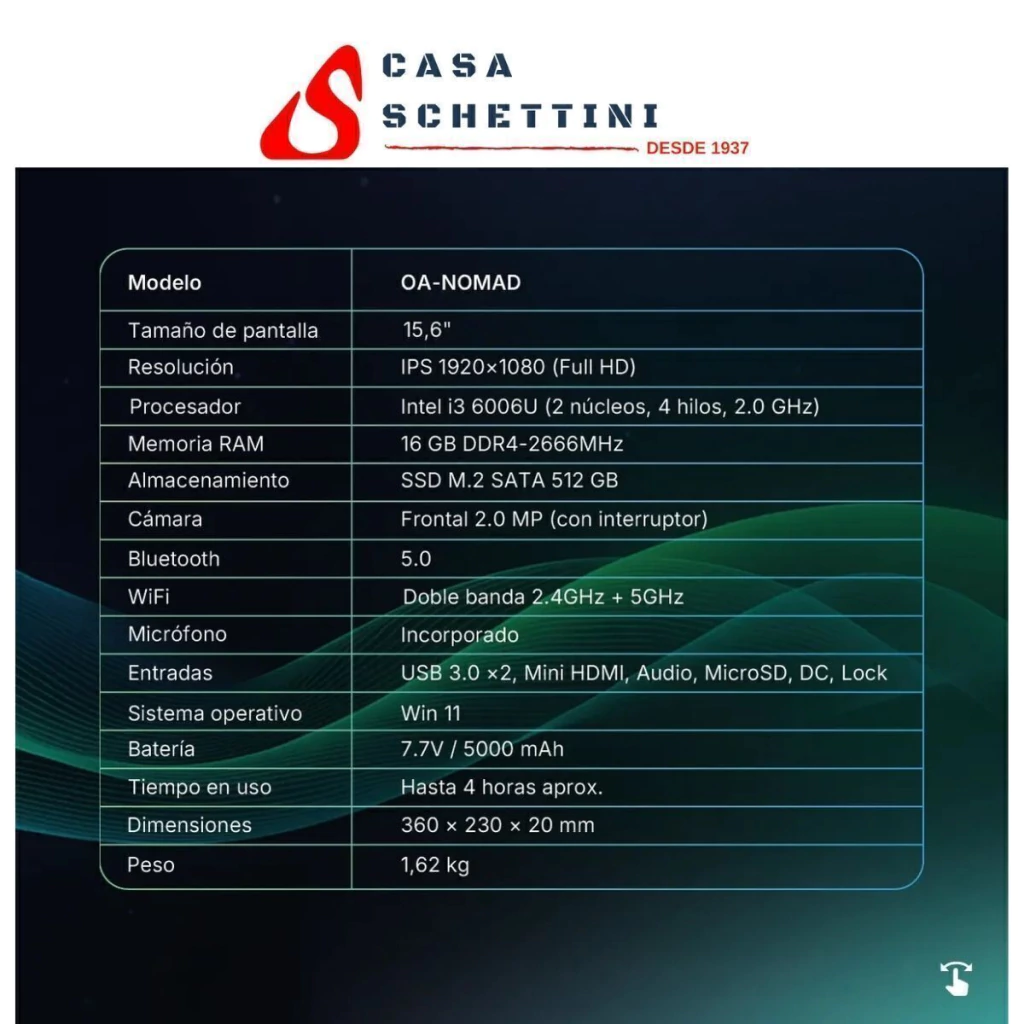 Si buscás una notebook confiable para estudio, home office o tareas administrativas, la OA NOMAD E160U ofrece exactamente lo que necesitás: fluidez en uso diario, pantalla amplia y conectividad completa, sin pagar por potencia que no vas a usar.