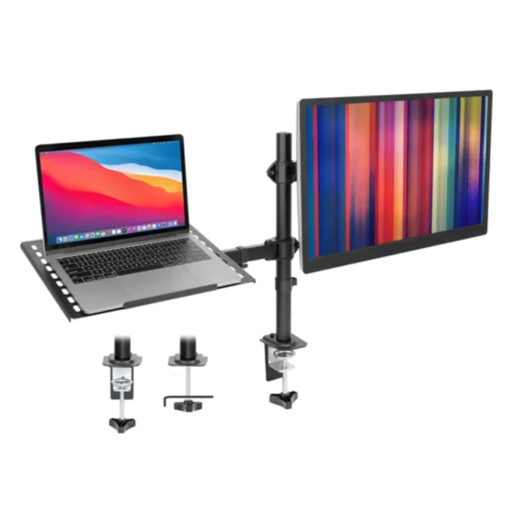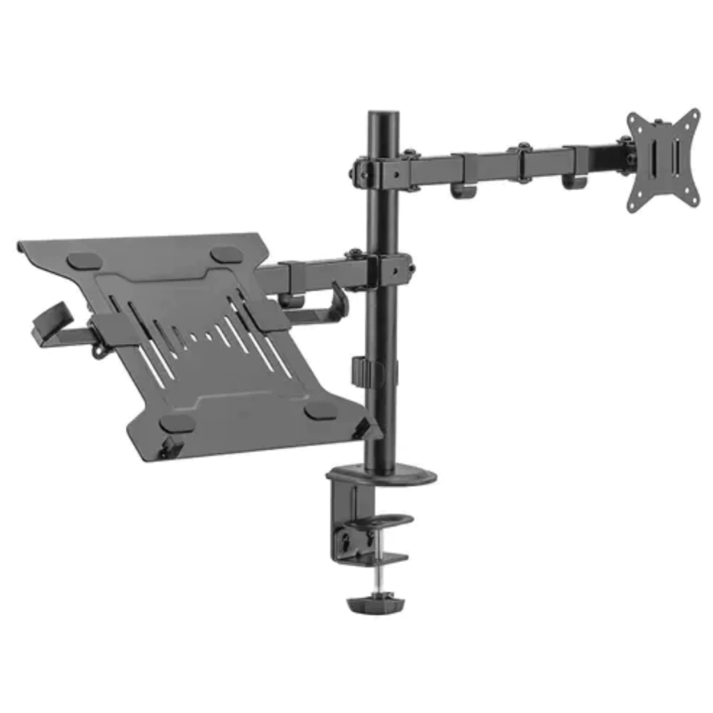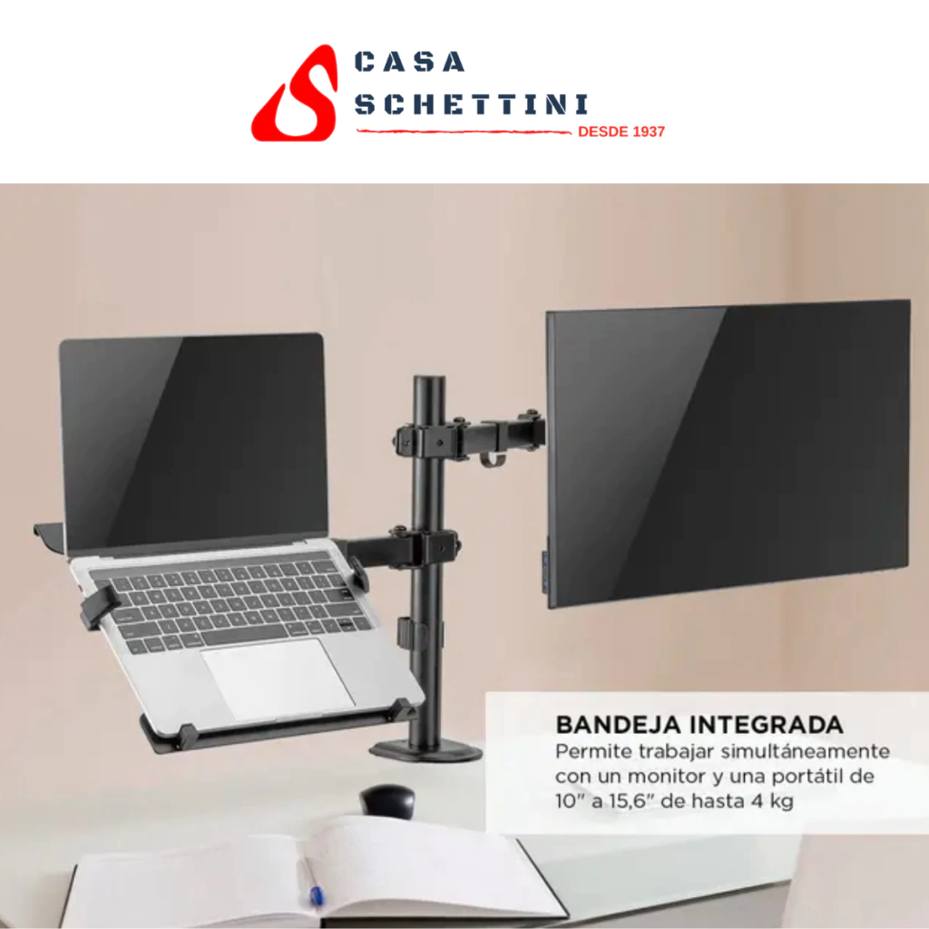 Con su ajuste independiente, te permite colocar tus monitores al nivel óptimo y obtener un ángulo de visión perfecto. Su estructura de acero duradero admite monitores de 17" a 32", con un peso de hasta 9 kg, y portátiles de 10" a 15,6", con un peso de hasta 4 kg.