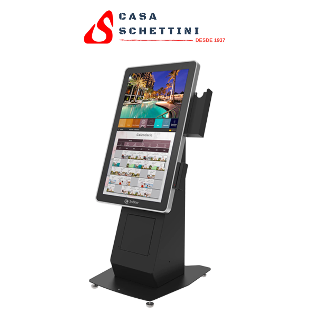 Su diseño elegante y robusto, con marcos de acero y componentes de aluminio, garantiza durabilidad y mejora la imagen de tu local. Adaptable a diversos entornos comerciales, ofrece opciones como soporte de piso, escáner de códigos 2D y lector de banda magnética.